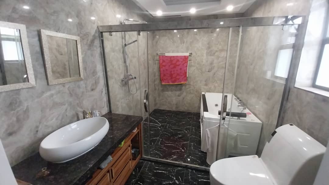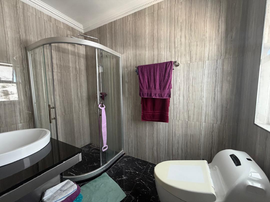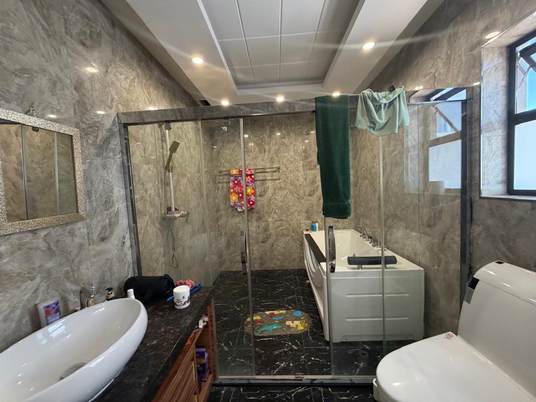 The home boasts five bedrooms, including a full en‐suite bathroom for added privacy. Additional sanitary facilities include 4 shower/WC/basin rooms, one full bathroom, a guest toilet, and a separate WC, making it ideal for a large household. A dressing room and hobby room further enhance the interior offering. Movement throughout the upper level is supported by a functional landing area, while three balconies provide outdoor relaxation spaces with elevated views.
