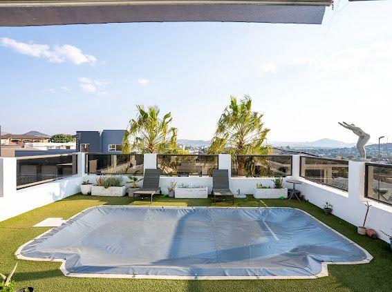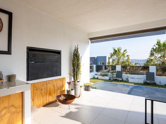 The open-plan kitchen, dining, and living area seamlessly connect to a butler’s kitchen, patio, BBQ area, and sparkling swimming pool with a 180-degree from where you can catch the sunrise and 365 stunning sunsets a year, ideal for entertaining or just unwinding after a busy day at the office!