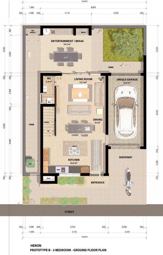 Total Footprint: 155.2 m2 on a minimum ERF size of 160 m2